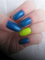 Except for the ring finger I have all painted with Blue Sparrow. In order better to paint the glitter of many to come into, I'm using a cotton swab (dipped in nail polish Entfehrner) once or twice gone over it.